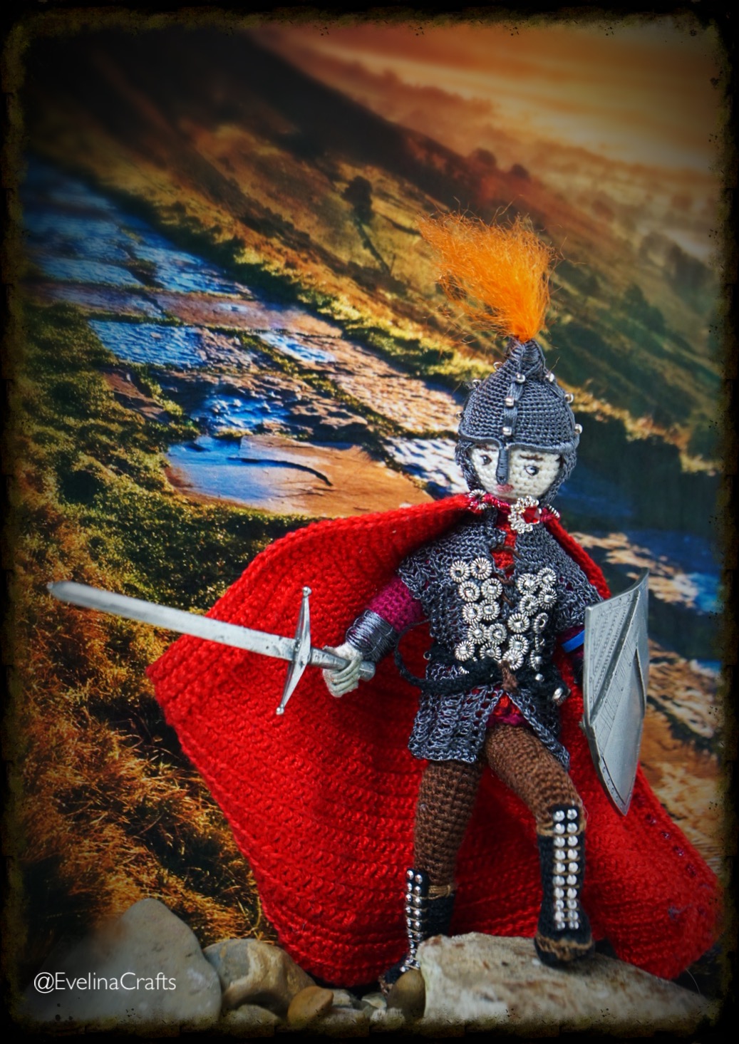 His armour completed, including Haurberk (the chained top) and the Mail coif (the hood) that used to be made as one piece with the hourberk in the olden times.