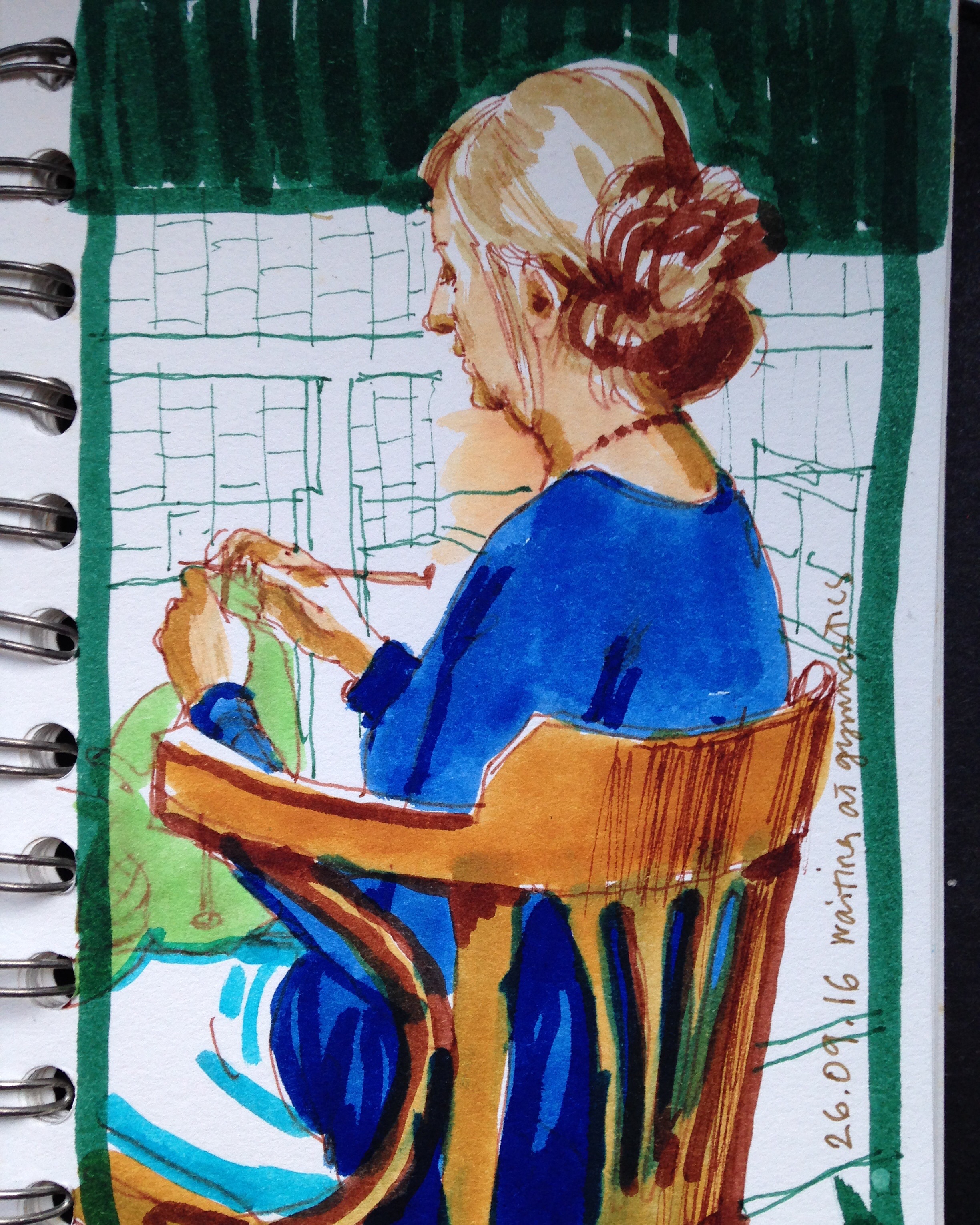 Sketchbook in my backpack. Crochet experiments.
