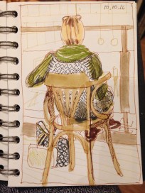 Sketchbook in my backpack. Crochet experiments.