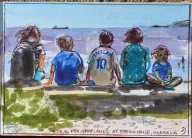 Sketchbook in my backpack. Crochet experiments.