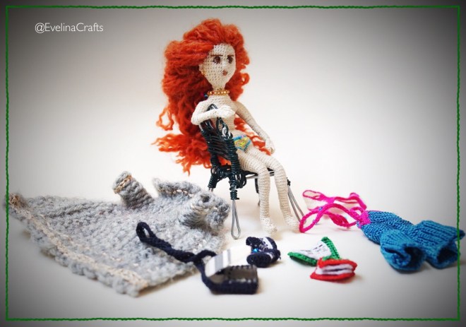 Sketchbook in my backpack. Crochet experiments.
